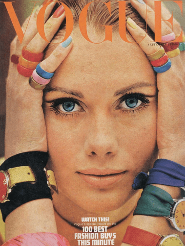 In the 1960s the American Vogue, under the leadership of Diana Vriland, had become the symbol of a new era – more creative and sexy. The magazine redefined the look of female models, showing shapely figures which highlight thin, gender-neutral physiques.