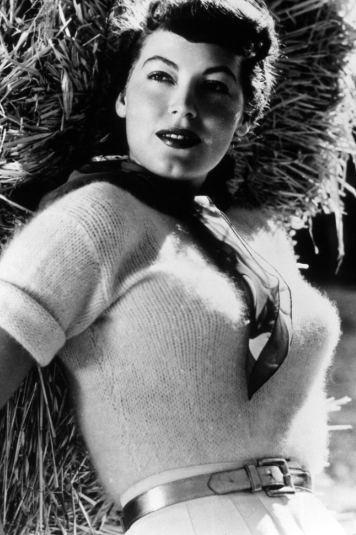 Ava Gardner was one of the decade’s most successful (and beautiful) actresses. Here she is in 1944, showcasing the beauty of a belted waist and a chic neckerchief; both of which were key 1940s fashion trends.