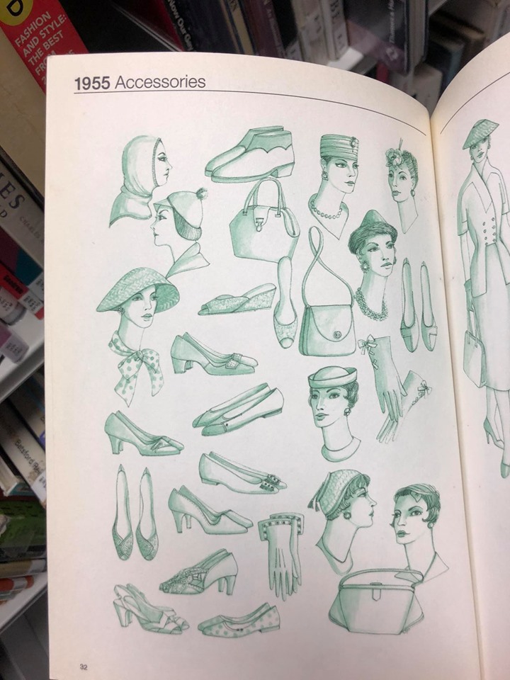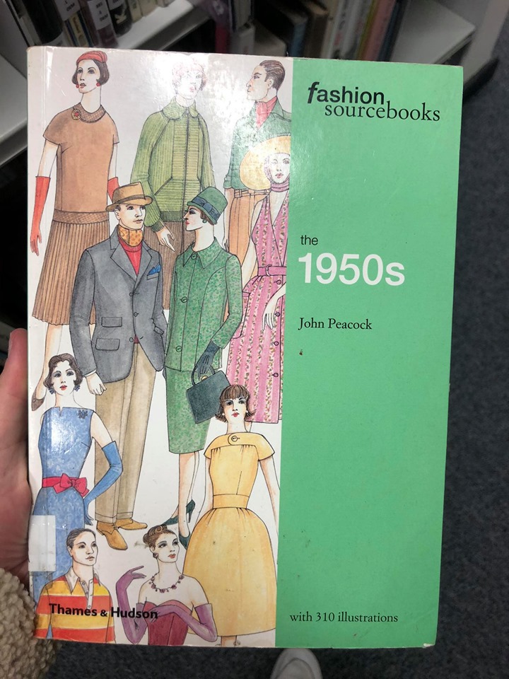 I then found a book which focuses only on the 50s. What I liked about this book by, John Peacock, was that each page was dedicated to an aspect of the many fashion trends, for example, accessories, dresses, hair. It featured a whole range of styles. From reading this book, I learnt that in the 50s, clothes became more conventional, and women wore scarlet lips and fingernails. I also learnt that Dior’s New Look influenced softer shoulders, corseted waists, and fuller longer skirts with petticoats.