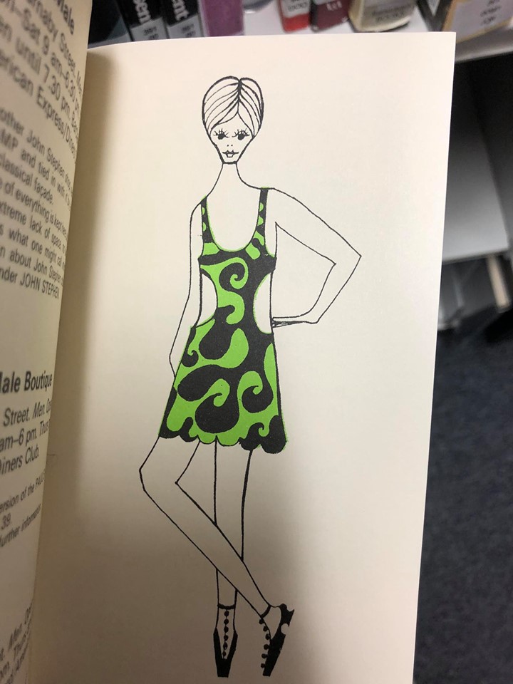 ‘Gear Guide’ by David Johnson gives an entertaining view of fashion in the swinging Sixties. This small book was filled with quirky illustrations that demonstrate different fashion styles of the Sixties. I liked this book because of it uniqueness and quirkiness. It was interesting to see something other than photographs.